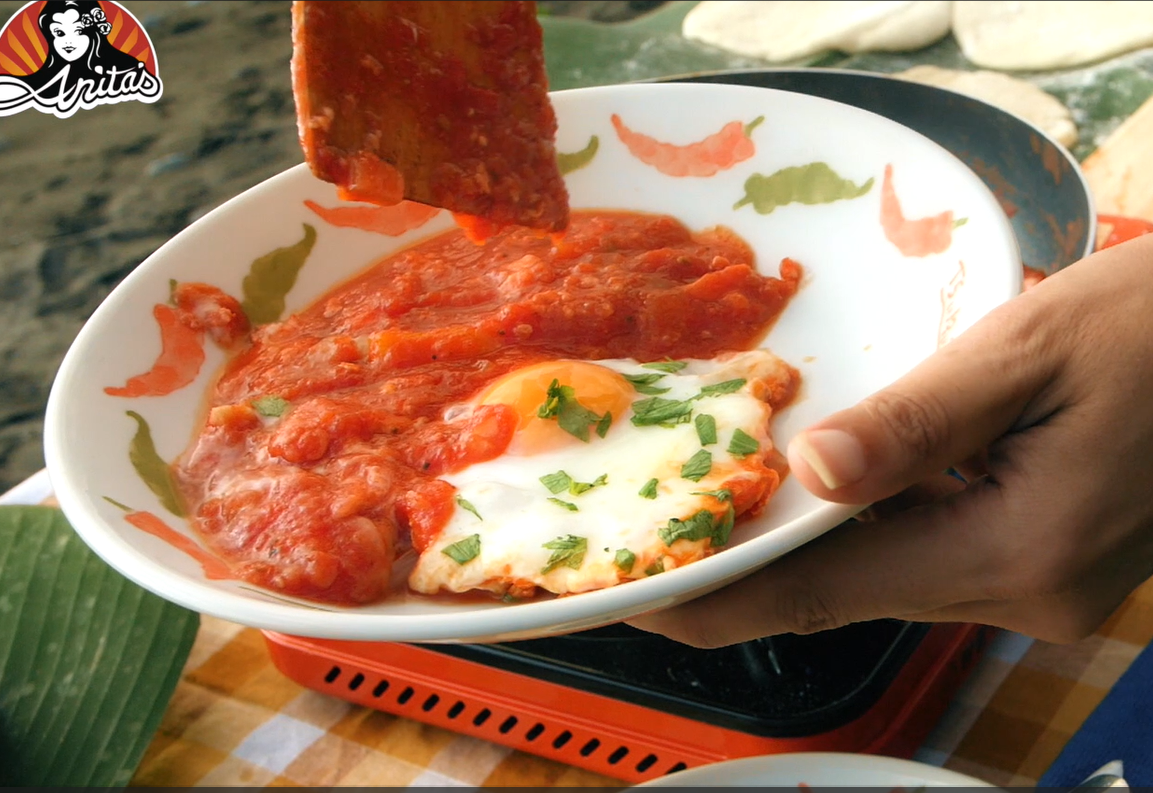 搭配麵餅,口袋餅, 也可以搭配米飯作為簡單的一餐, 豐富的蔬菜及雞蛋燉煮的醬汁加上Anita's經典辣醬,微微的辣度更是開胃. 也可以加上羊肉更是豐盛!