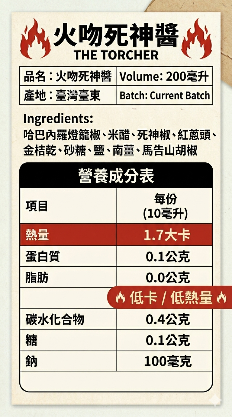 ▘成分:哈巴內辣椒、米醋、死神椒、紅蔥頭 金桔乾、糖、鹽、南薑 馬告山胡椒
